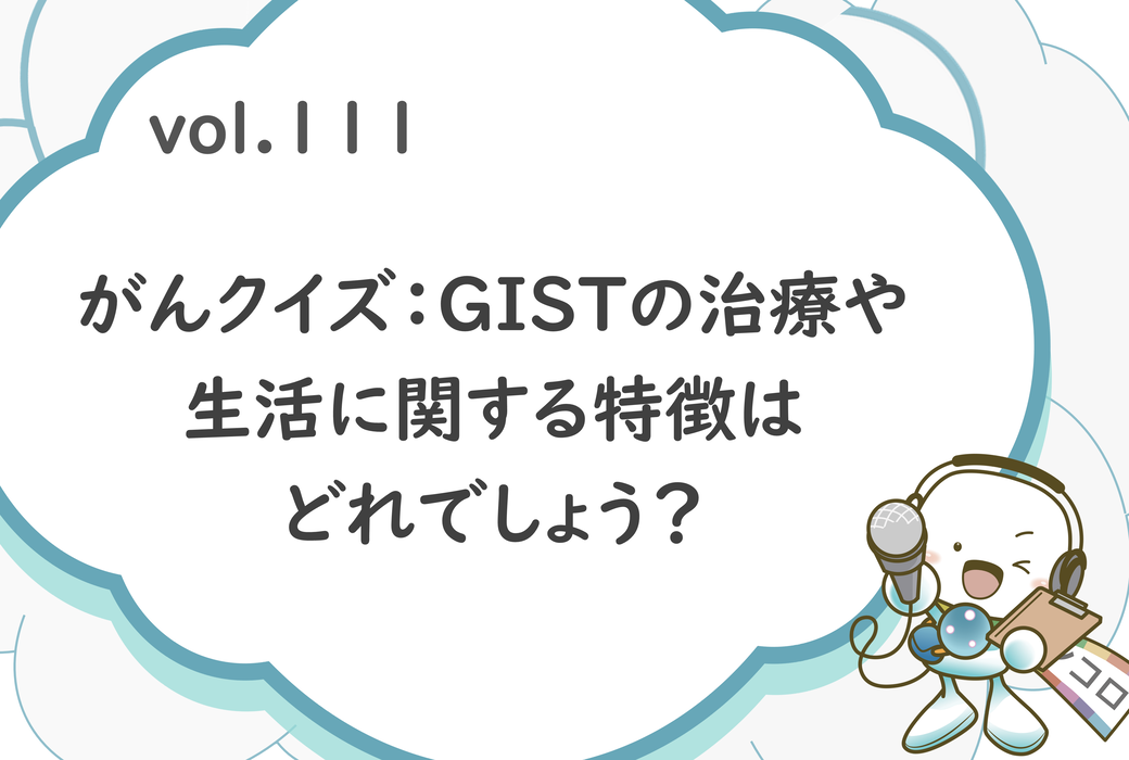「がんクイズ:GIST(消化管間質腫瘍)の治療や生活に関する特徴はどれでしょう?」オンコロ・ワンクエスチョンvol.111