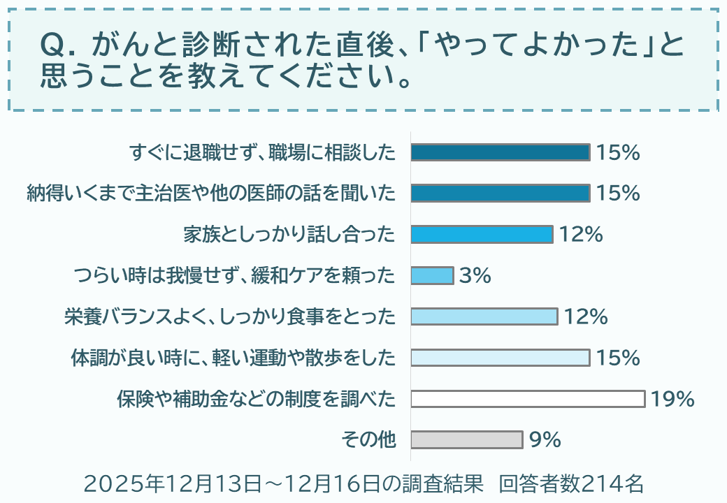 「がんと診断された直後、『やってよかった』と思うことを教えてください」