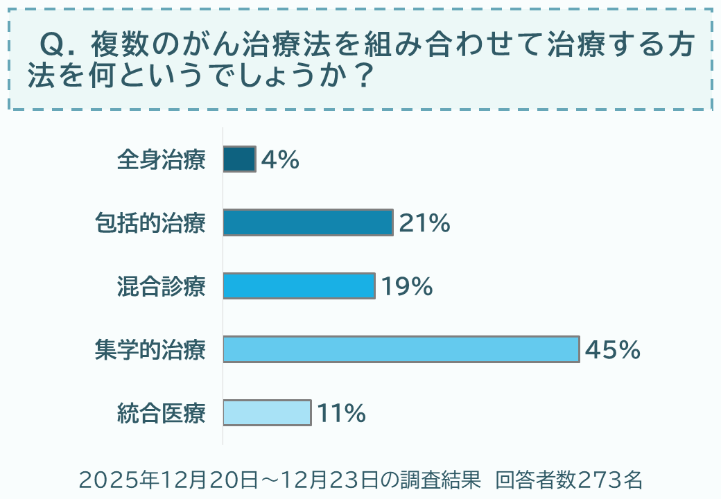 「複数のがん治療法を組み合わせて治療する方法を何というでしょうか?」の回答結果は上記の図の通りです。