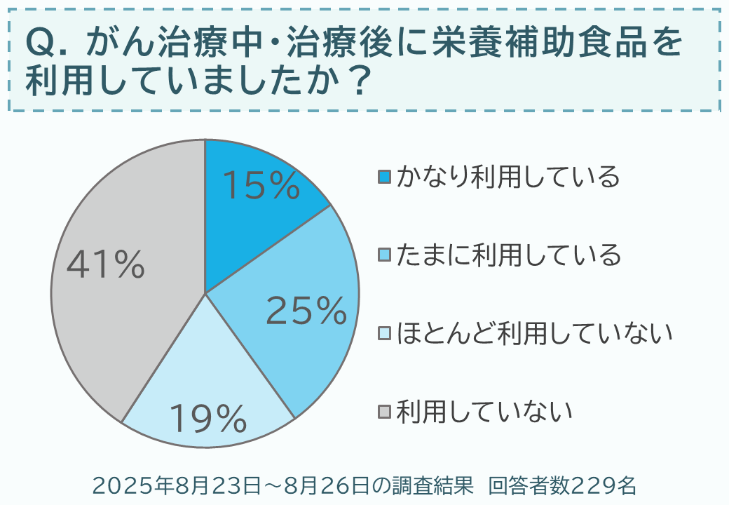 「がん治療中・治療後に栄養補助食品を利用していましたか?」