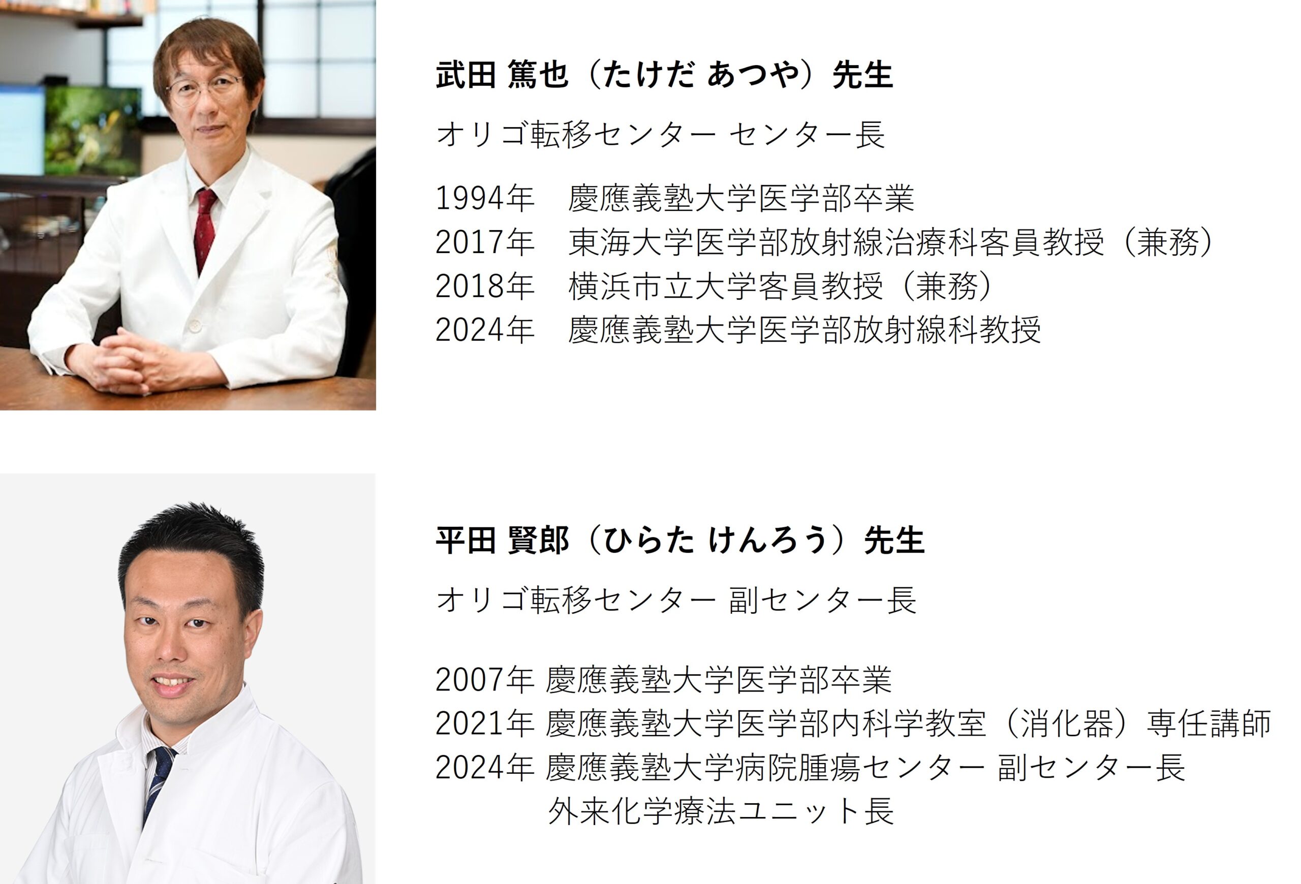 そこで今回は、今年の3月に慶應義塾大学病院オリゴ転移センターが設立されたことを機に、オリゴ転移に対する治療の実態と課題、またオリゴ転移センターに期待される役割について、同センター長の武田篤也先生、および副センター長の平田賢郎先生にお話を伺いました。