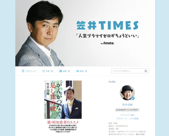闘病中も更新を続けた笠井さんのブログ