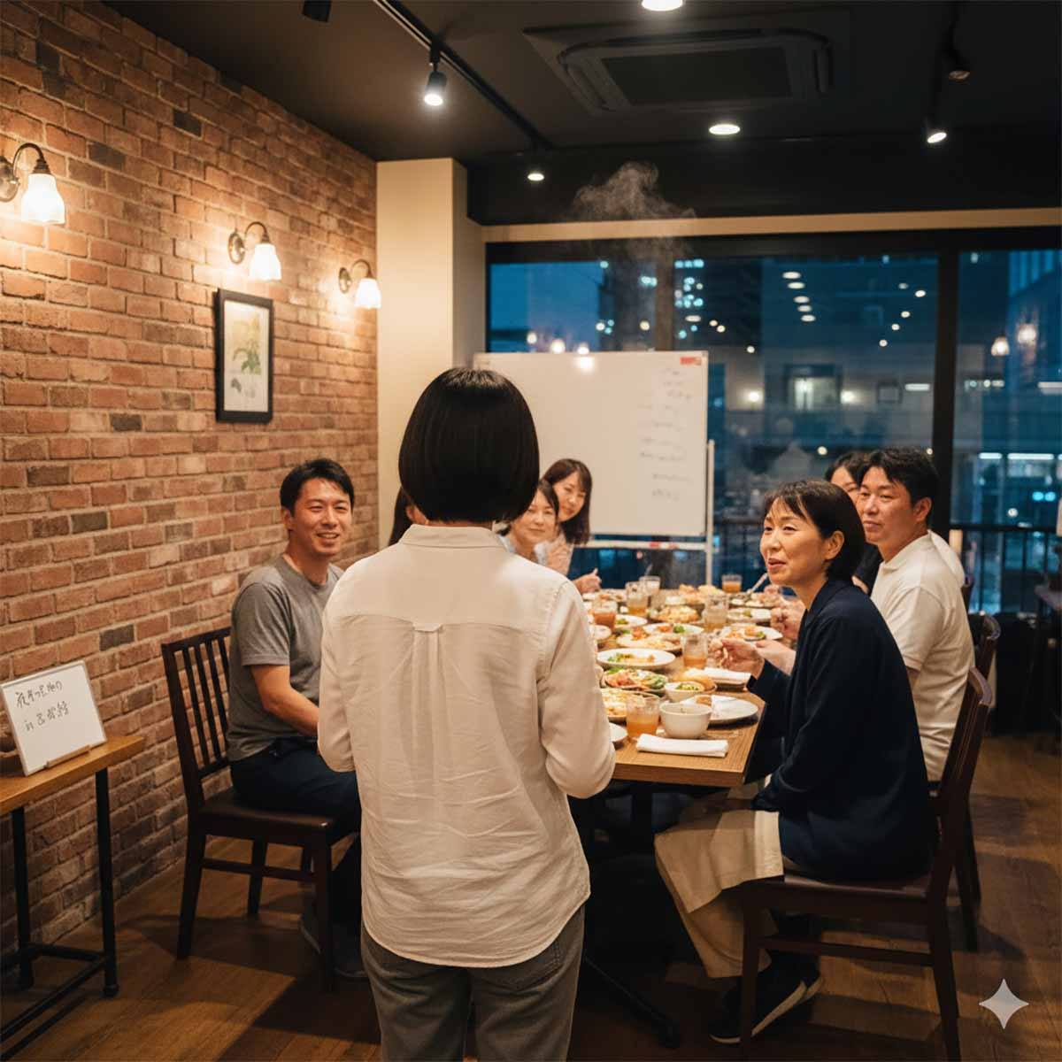 それが、「がん患者の夜のご飯会」です。働きながら治療をしているがん患者さんが、平日の仕事帰りに立ち寄り、温かいご飯を食べながら職場の愚痴や悩みをこぼせる集まりです。コロナ禍前に、古民家で開催していましたが、コロナ禍で中断。昨年(2025年)ようやく、大阪のビジネス街・北浜で再開しました。