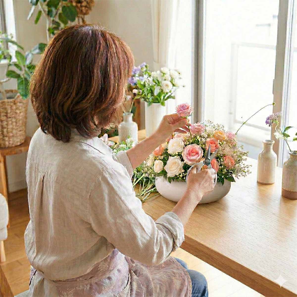 そんな私が支えにしたのは、趣味のフラワーアレンジメントでした。これは病気になる前から長く続けていることですが、花をアレンジしいる時間、そして後でその花を見つめている時間は、病気のことや将来の不安を完全に忘れることができました。どれほど身体がつらくても、自分の居場所として「好きなこと」を持ち続けることが、精神的な回復には不可欠だったと感じています。