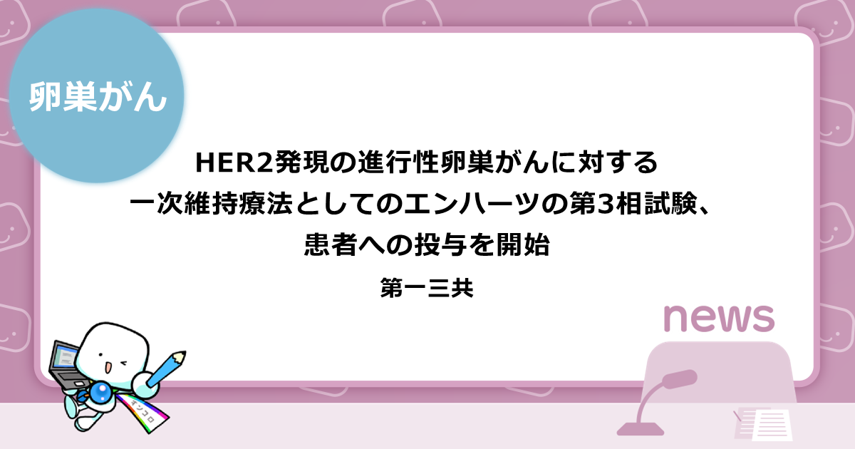 【試験開始】HER2発現の進行性卵巣がんに対する一次維持療法としてのエンハーツの第3相試験、患者への投与を開始