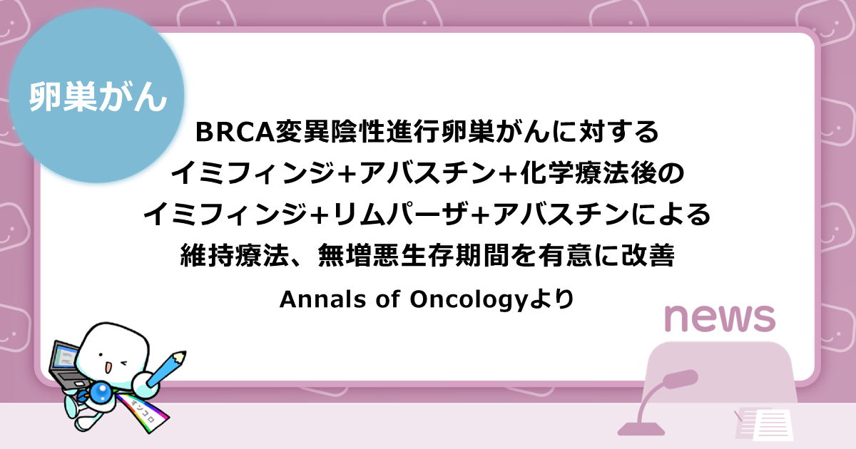 BRCA変異陰性進行卵巣がんに対するイミフィンジ+アバスチン+化学療法後のイミフィンジ+リムパーザ+アバスチンによる維持療法、無増悪生存期間を有意に改善