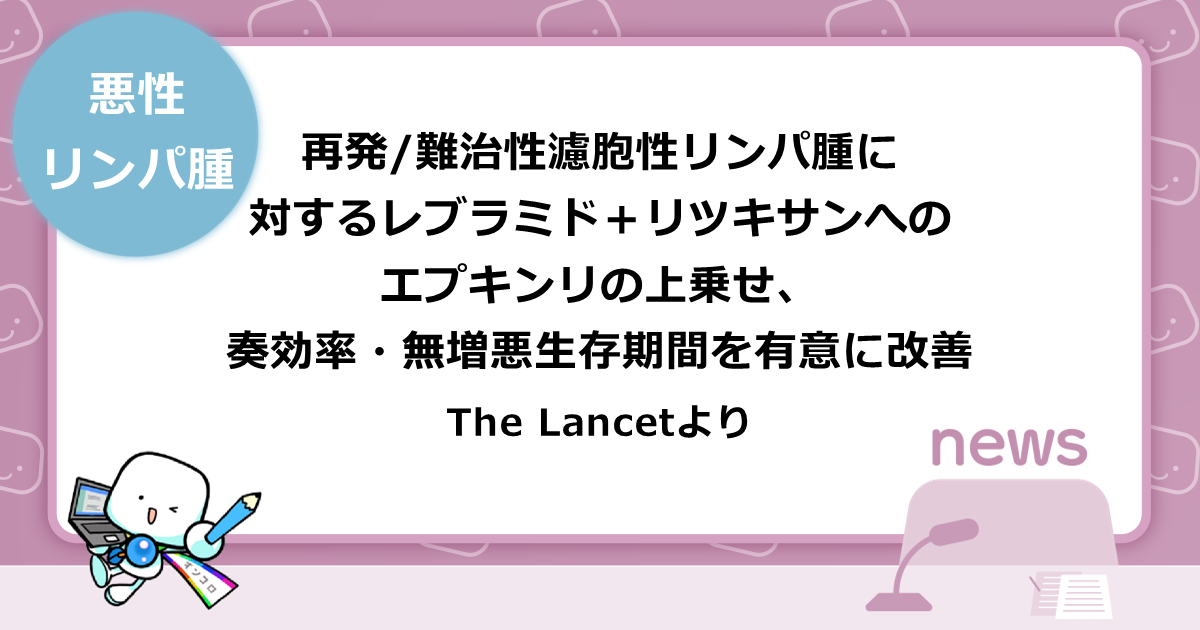 再発/難治性濾胞性リンパ腫に対するレブラミド+リツキサンへのエプキンリの上乗せ、奏効率・無増悪生存期間を有意に改善