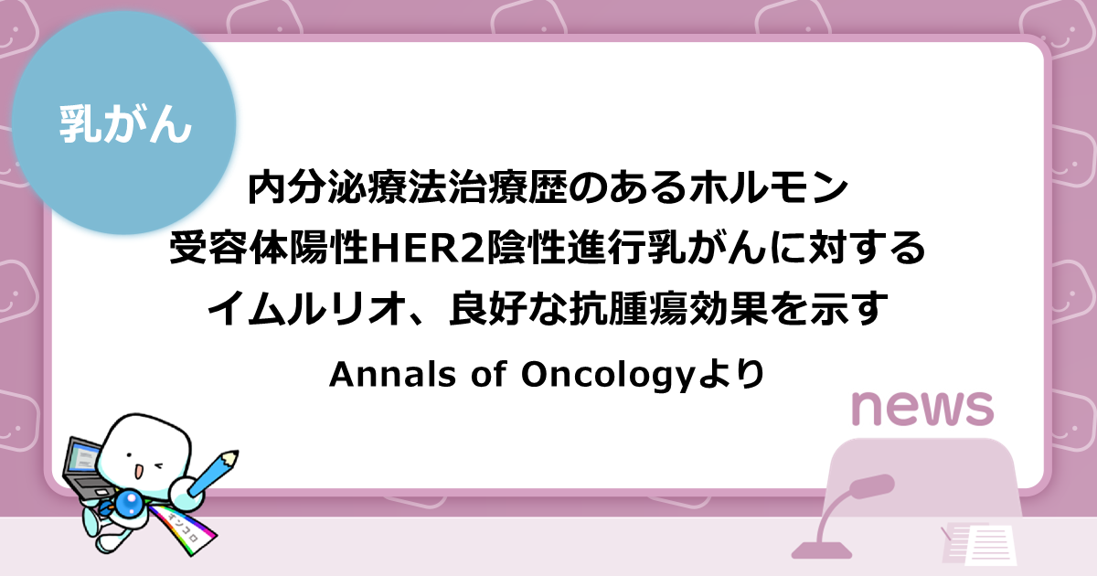 内分泌療法治療歴のあるホルモン受容体陽性HER2陰性進行乳がんに対するイムルリオ、良好な抗腫瘍効果を示す