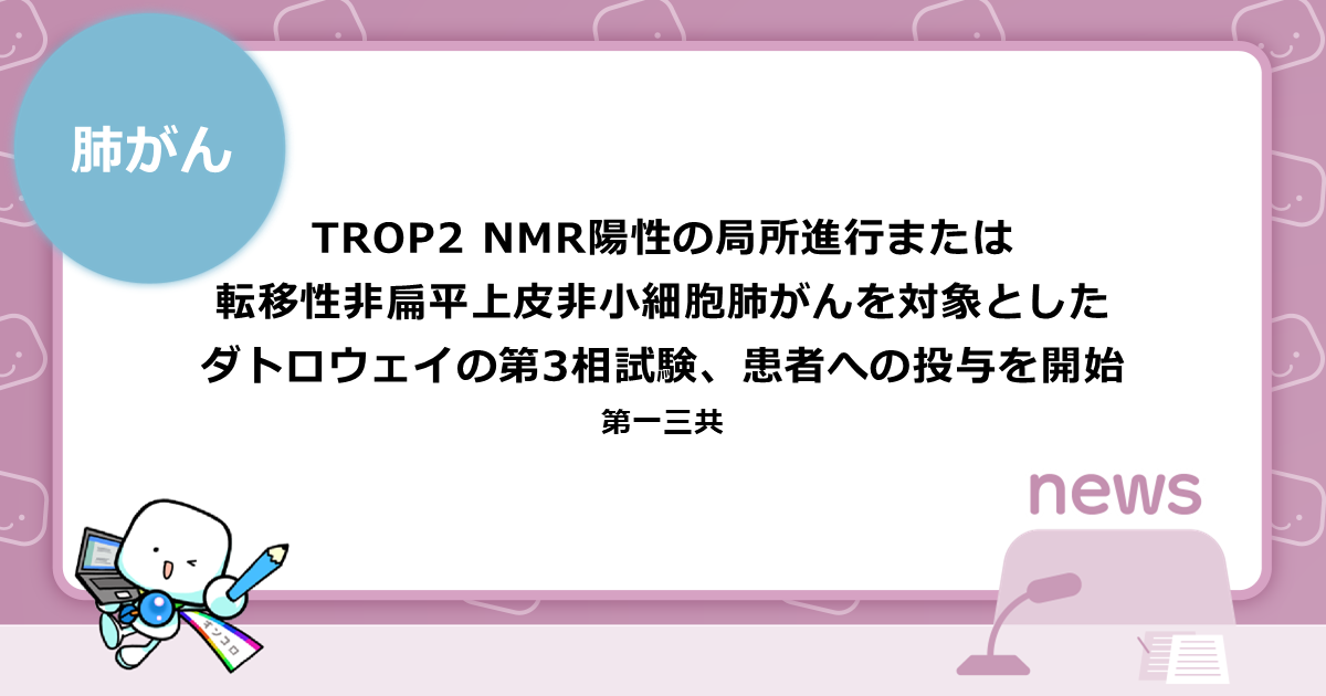 【試験開始】TROP2 NMR陽性の局所進行または転移性非扁平上皮非小細胞肺がんを対象としたダトロウェイの第3相試験、患者への投与を開始