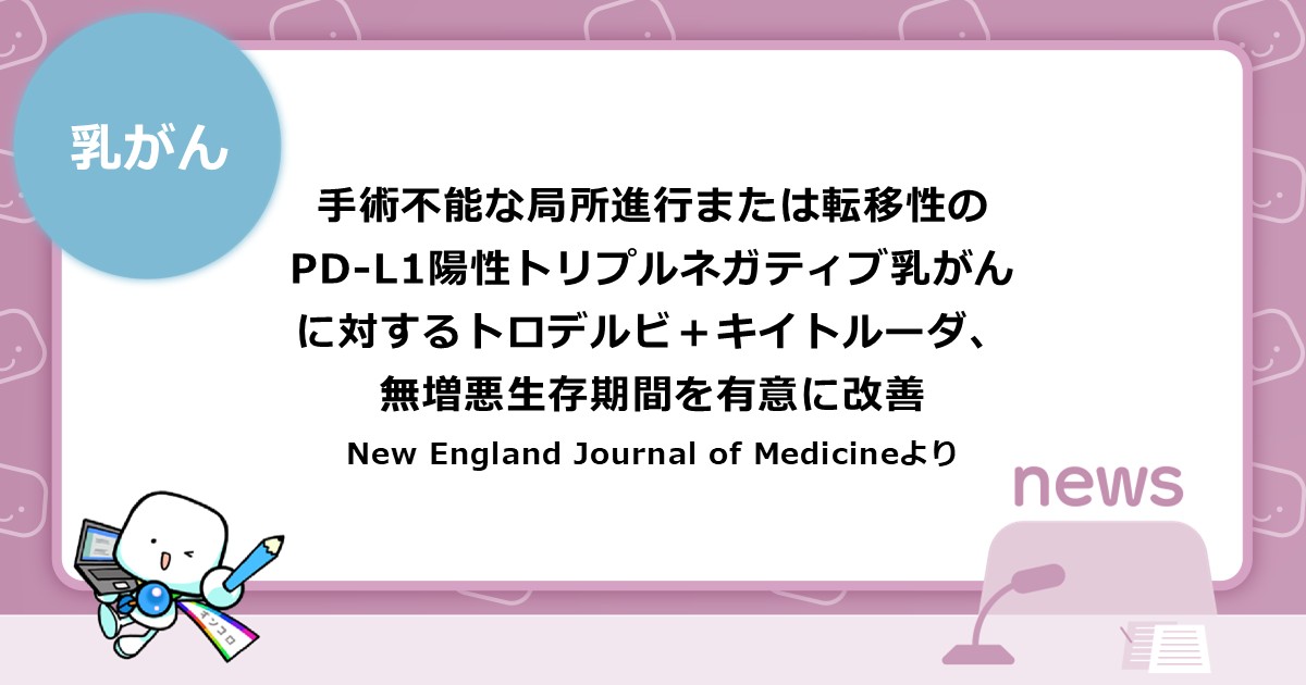 手術不能な局所進行または転移性のPD-L1陽性トリプルネガティブ乳がんに対するトロデルビ+キイトルーダ、無増悪生存期間を有意に改善