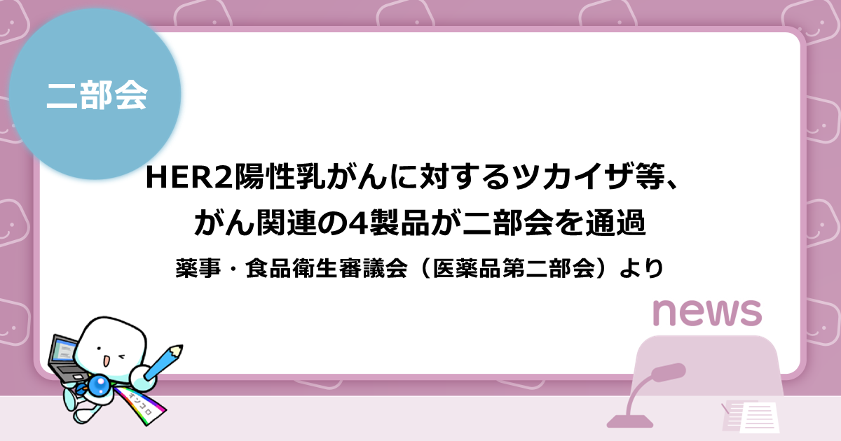 HER2陽性乳がんに対するツカイザ等、がん関連の4製品が二部会を通過
