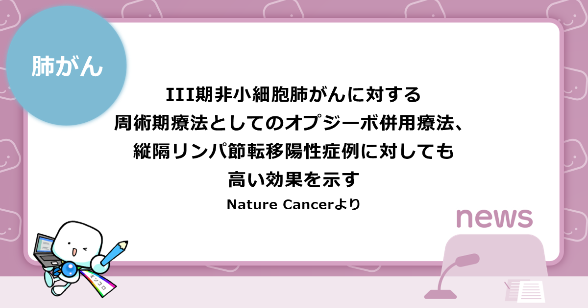 切除可能なIII期非小細胞肺がんに対する周術期療法としてのオプジーボ併用療法、縦隔リンパ節転移陽性症例に対しても高い効果を示す