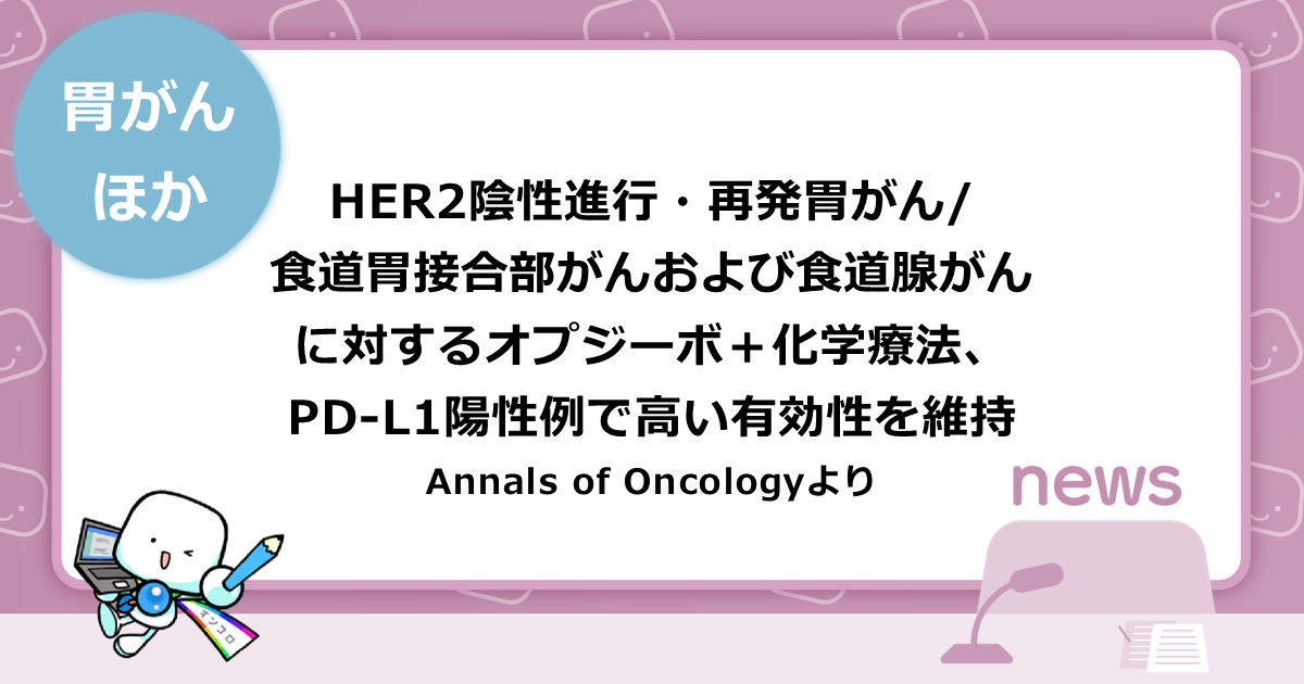HER2陰性進行・再発胃がん/食道胃接合部がんおよび食道腺がんに対するオプジーボ+化学療法、PD-L1陽性例で高い有効性を維持