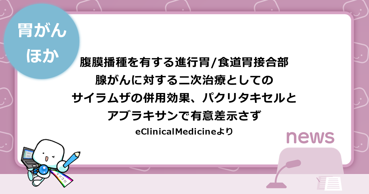 腹膜播種を有する進行胃/食道胃接合部腺がんに対する二次治療としてのサイラムザの併用効果、パクリタキセルとアブラキサンで有意差示さず