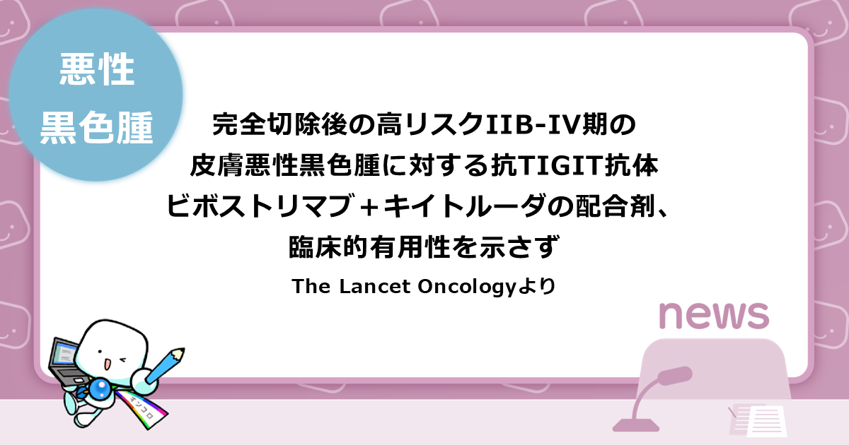 完全切除後の高リスクIIB-IV期の皮膚悪性黒色腫に対する抗TIGIT抗体ビボストリマブ+キイトルーダの配合剤、臨床的有用性を示さず