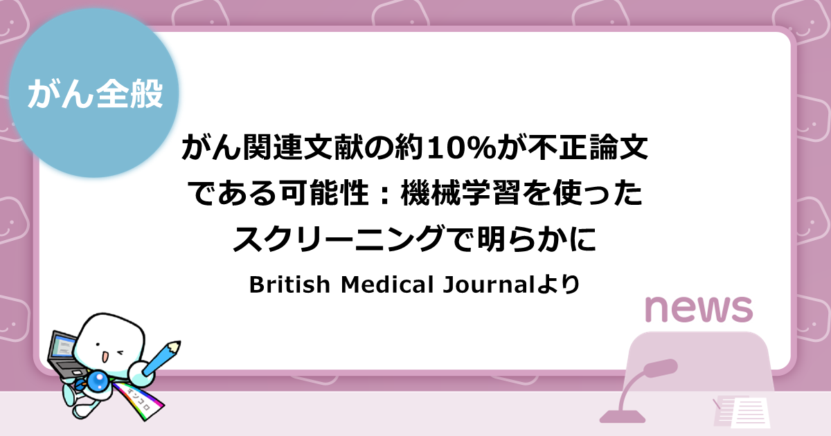 がん関連文献の約10%は不正論文である可能性:機械学習を使ったスクリーニングで明らかに