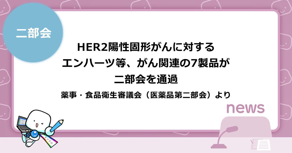 HER2陽性固形がんに対するエンハーツ等、がん関連の7製品が二部会を通過