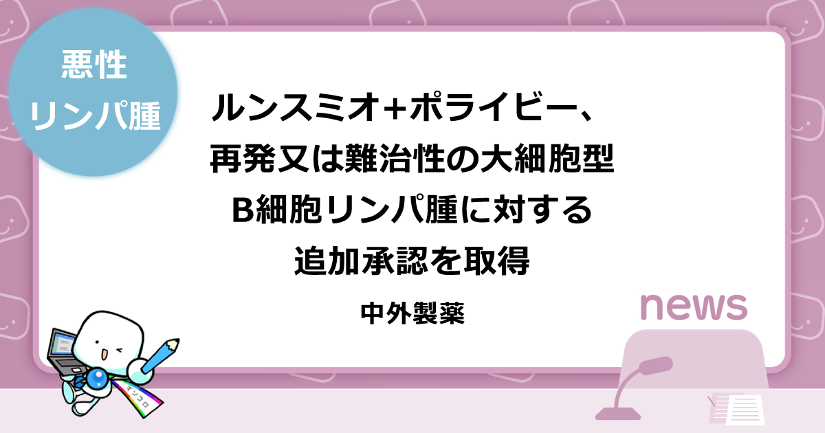 【承認】ルンスミオ+ポライビー、再発又は難治性の大細胞型B細胞リンパ腫に対する追加承認を取得