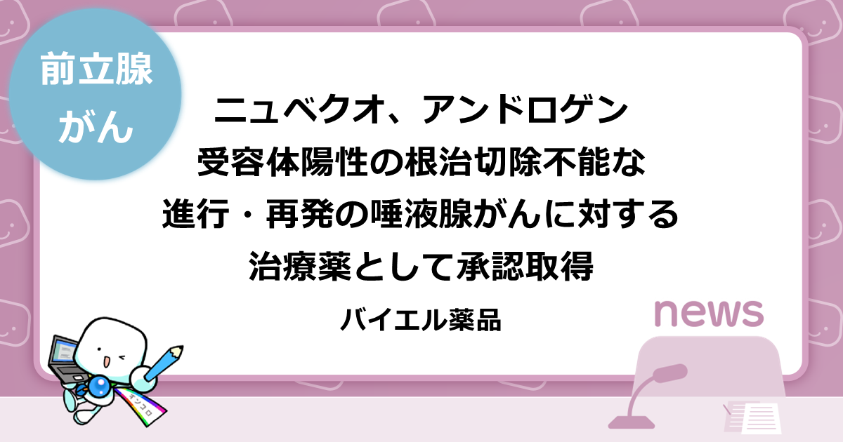 【承認】ニュベクオ、アンドロゲン受容体陽性の根治切除不能な進行・再発の唾液腺がんに対する治療薬として承認取得