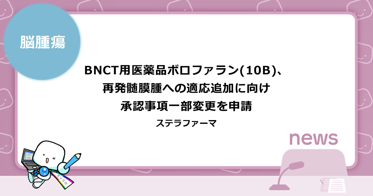 BNCT用医薬品ボロファラン(10B)、再発髄膜腫への適応追加に向け承認事項一部変更を申請