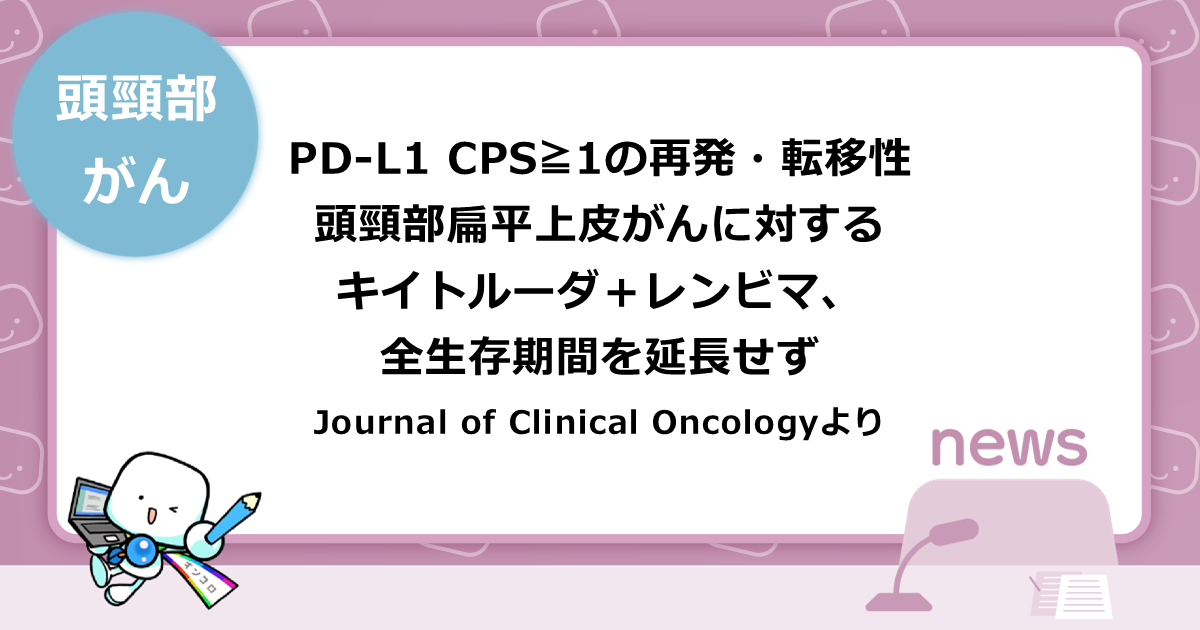 PD-L1 CPS≧1の再発・転移性頭頸部扁平上皮がんに対するキイトルーダ+レンビマ、全生存期間を延長せず