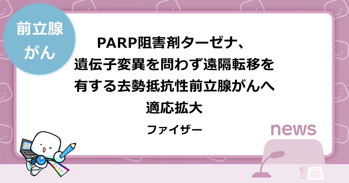 PARP阻害剤ターゼナ、遺伝子変異を問わず遠隔転移を有する去勢抵抗性前立腺がんへ適応拡大