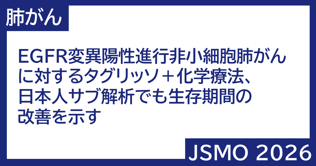 EGFR変異陽性進行非小細胞肺がんに対するタグリッソ+化学療法、日本人サブ解析でも生存期間の改善を示す