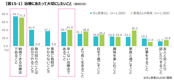 結果3:治療において大切にしたいことの上位2位は、納得できる治療であること、辛くない治療であること