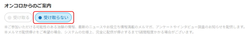 2.基本情報内の「オンコロからのご案内」を「受け取らない」に変更