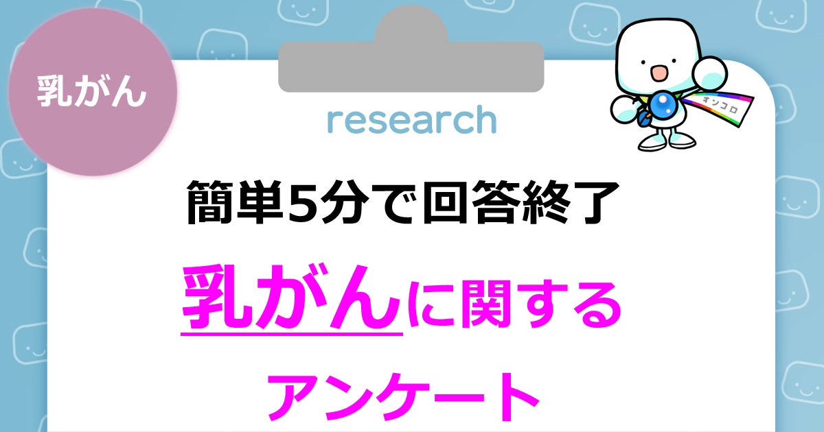 ・電話番号:0120-549-715(平日:10:00~18:00) ・メールアドレス:info_oncolo@3h-ms.co.jp ※お問い合わせの際は『乳がんの調査について』とお伝えください。 ・オンコロ担当者:山﨑 和樹